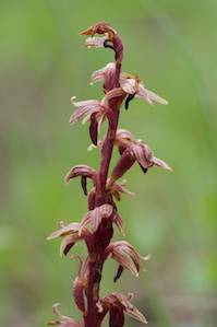 Corallorhiza species -- "Coral root orchids". Five species are found in Yellowstone, shown below.