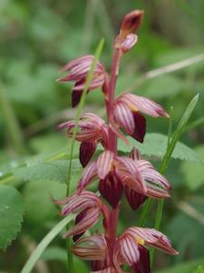 Locations: Mammoth area, Beaver Ponds trail, but continue straight upstream along Clematis Creek. Mammoth area, Narrow Gauge trail, not long after it splits to the left from the Beaver Ponds trail. In both cases the plants were right on the edge of the trail. Also look for Piperia unalascensis (Alaska rein orchid) on the Narrow Gauge trail.